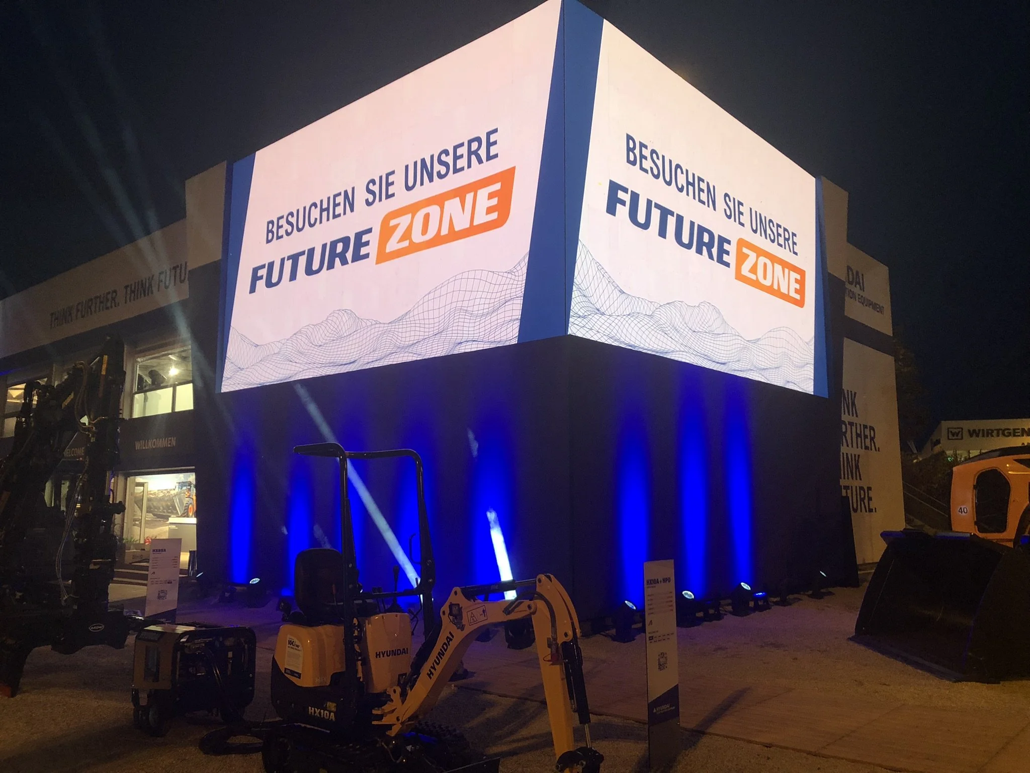 With a 18m x 6m corner LED screen, technology zone and interactive displays throughout the 3500 sqm site, GLS designed and delivered this outdoor stand for Hyundai at Bauma; one of the largest B2B events in the world. The main structure incorporated a reception area, bar, restaurant and event space, six meeting rooms, VIP area and press room whilst a separate structure housed the technology zone and shop. By dividing the outside space into separate zones we created an immersive experience that highlighted Hyundai’s range of products to inform, engage and excite visitors to the stand.